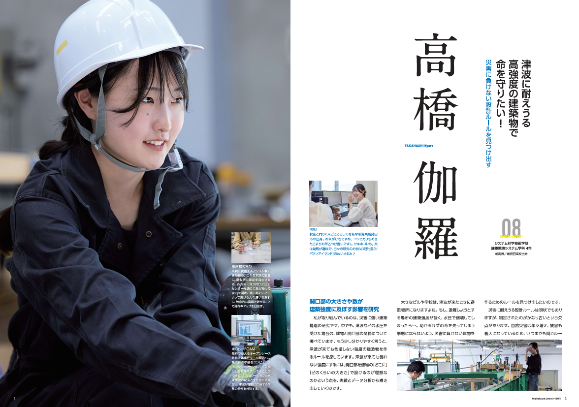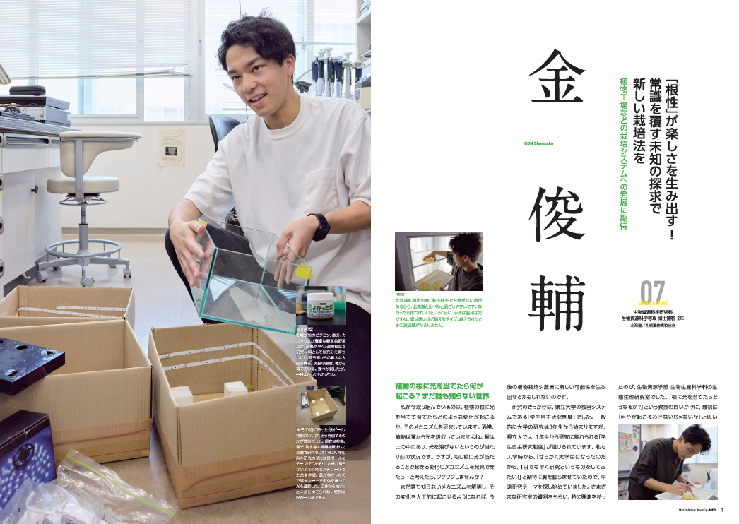 今号は、生物資源科学部とシステム科学技術学部の魅力をしっかり伝えるため、新たな試みとして両開きのダブル表紙に挑戦してみました。是非ご覧ください!