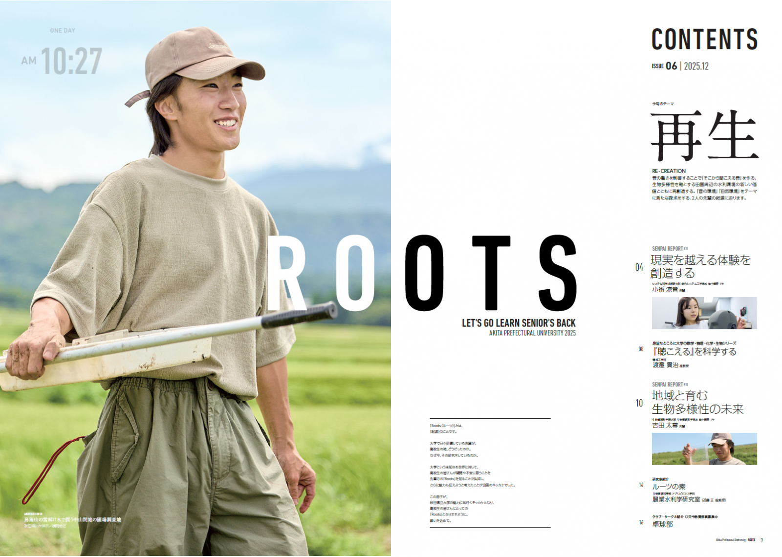 大学で日々研鑽している先輩が、高校生の時、どうだったのか。なぜ今、その研究をしているのか。大学という未知なる世界に対して、高校生の皆さんが疑問や不安に思うことを、秋田県立大学の先輩の「Roots」を知ることで払拭し、さらに魅力も伝えようと考えたことが、この企画をスタートしたキッカケです。
