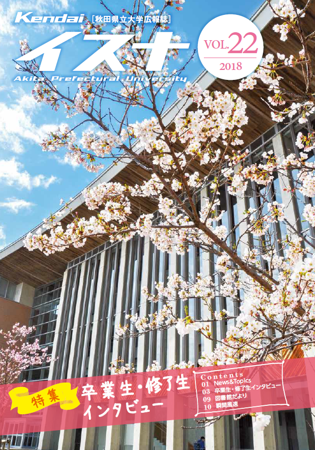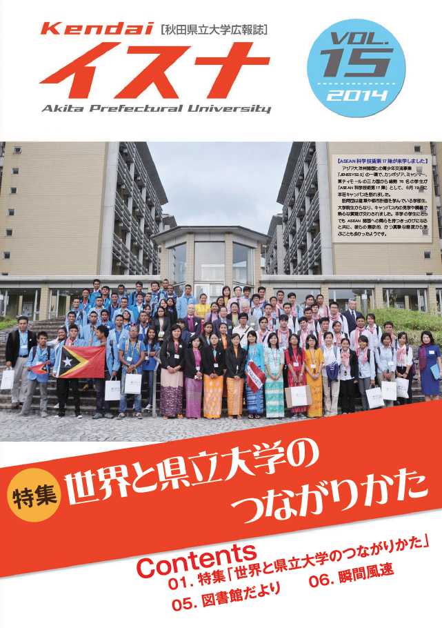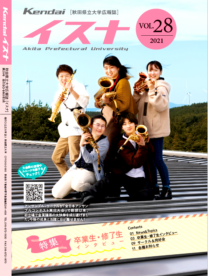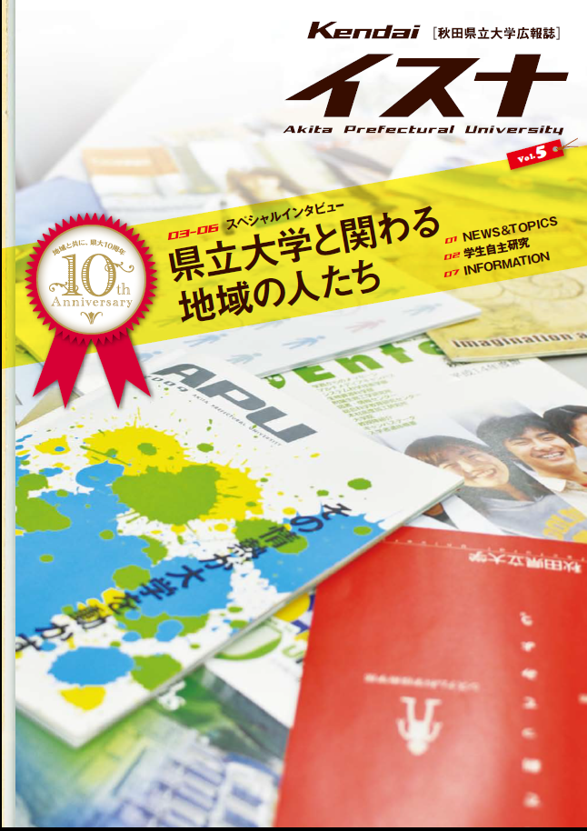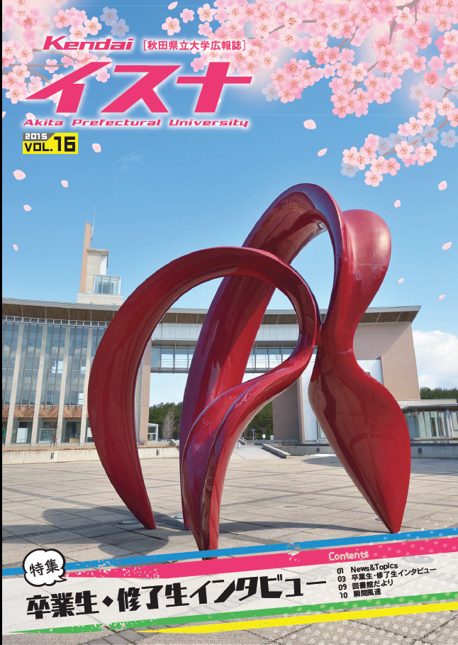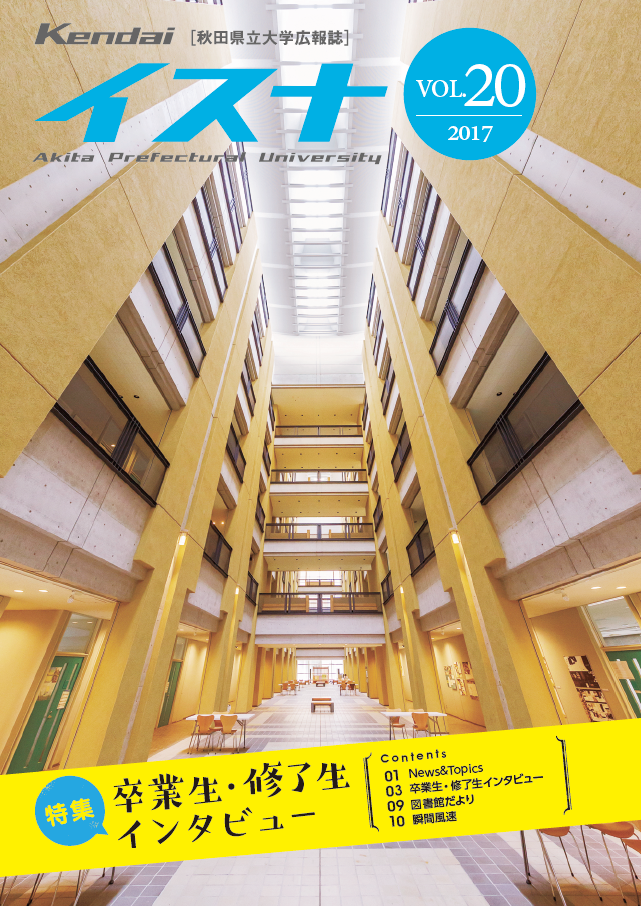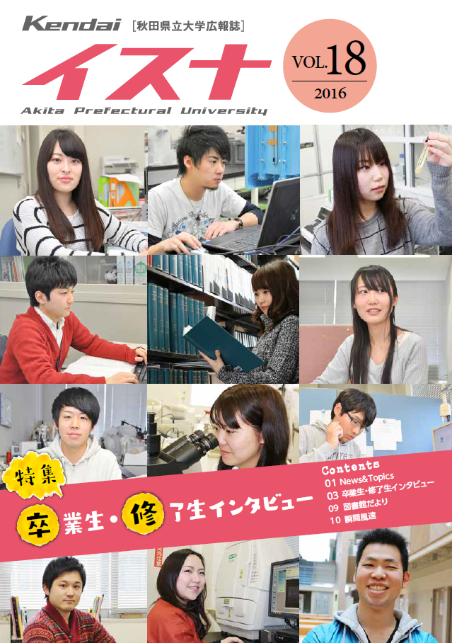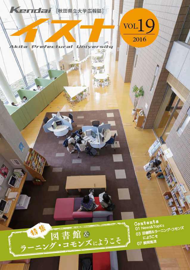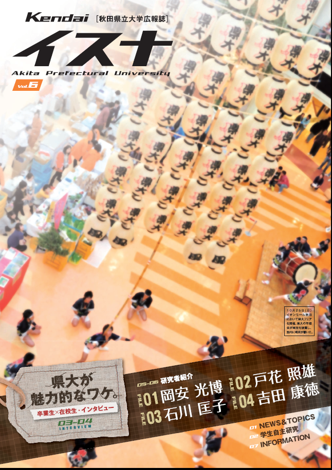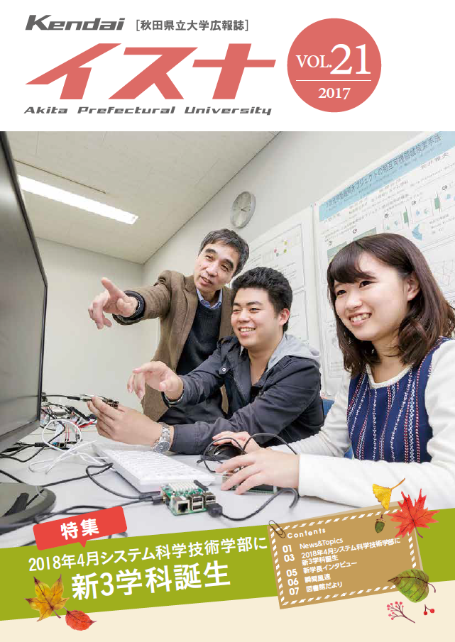 広報誌イスナ 秋田県立大学広報誌 イスナ イスナ Vol.33(最新号) イスナ Vol.32 イスナ Vol.31 イスナ Vol.30 イスナ Vol.29 イスナ Vol.28 イスナ Vol.27 イスナ Vol.26 イスナ Vol.25 イスナ Vol.24 イスナ Vol.23 イスナ Vol.22 イスナ Vol.21 イスナ Vol.20 イスナ Vol.19 イスナ Vol.18 イスナ Vol.17 イスナ Vol.16 イスナ Vol.15 イスナ Vol.14 イスナ Vol.13 イスナ Vol.12 イスナ Vol.11 イスナ Vol.10 イスナ Vol.9 イスナ Vol.8 イスナ Vol.7 イスナ Vol.6 イスナ Vol.5 イスナ Vol.4 イスナ Vol.3 イスナ Vol.2 イスナ 創刊号 科学のフリーペーパー イスナ Science イスナサイエンス Vol.10 イスナサイエンス Vol.9 イスナサイエンス Vol.8 イスナサイエンス Vol.7 イスナサイエンス Vol.6 イスナサイエンス Vol.5 イスナサイエンス Vol.4 イスナサイエンス Vol.3 イスナサイエンス Vol.2 イスナサイエンス Vol.1