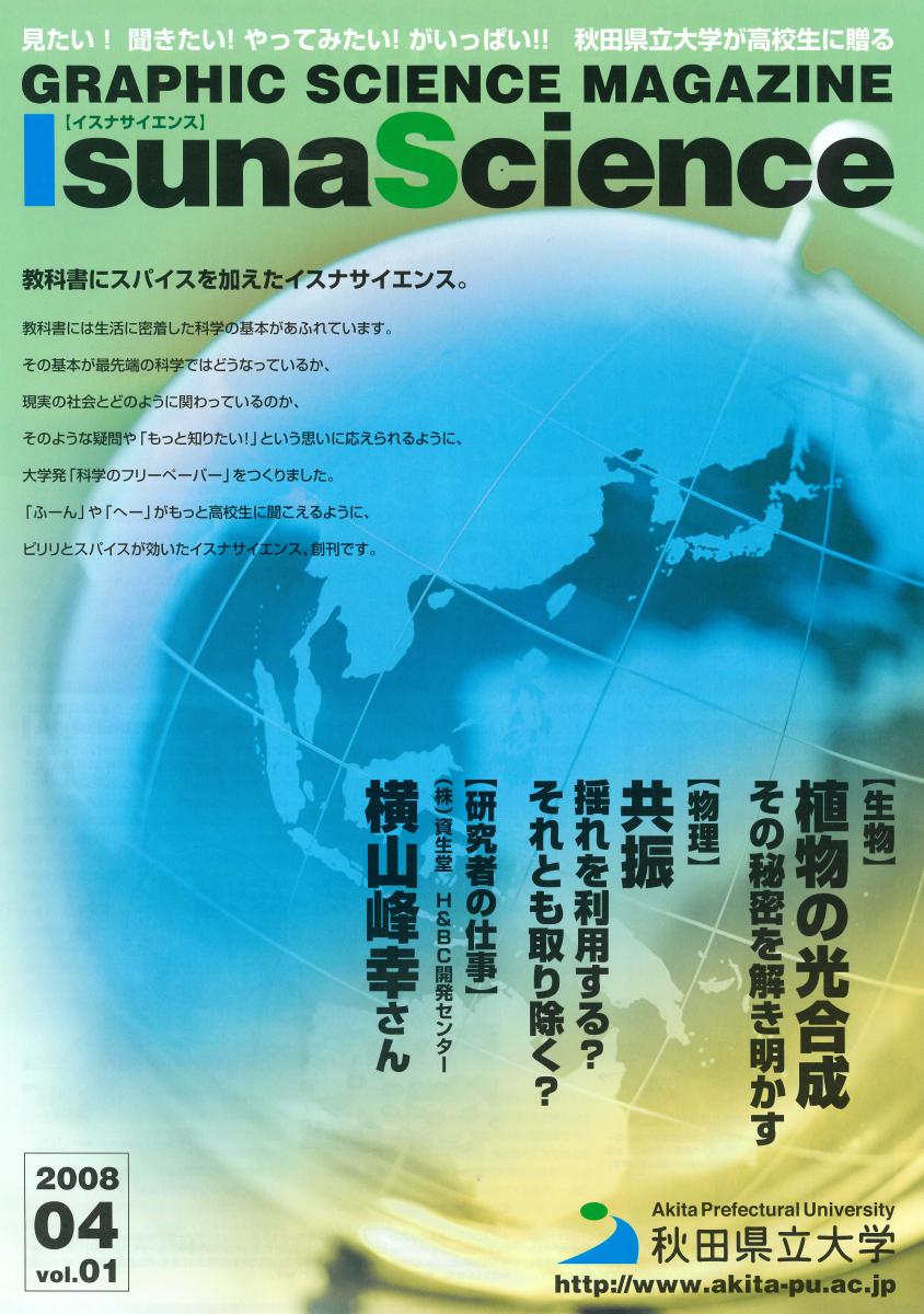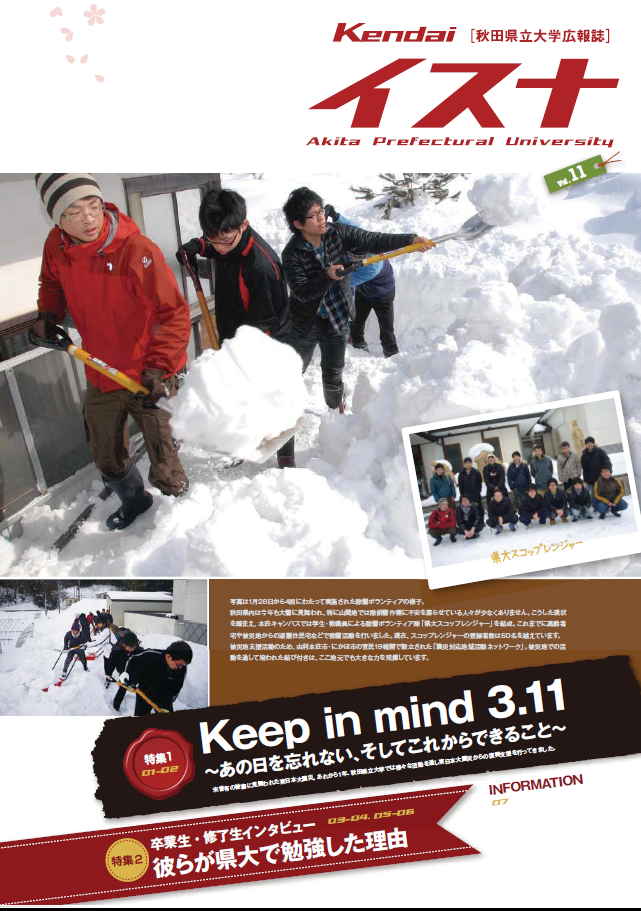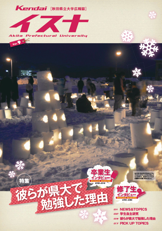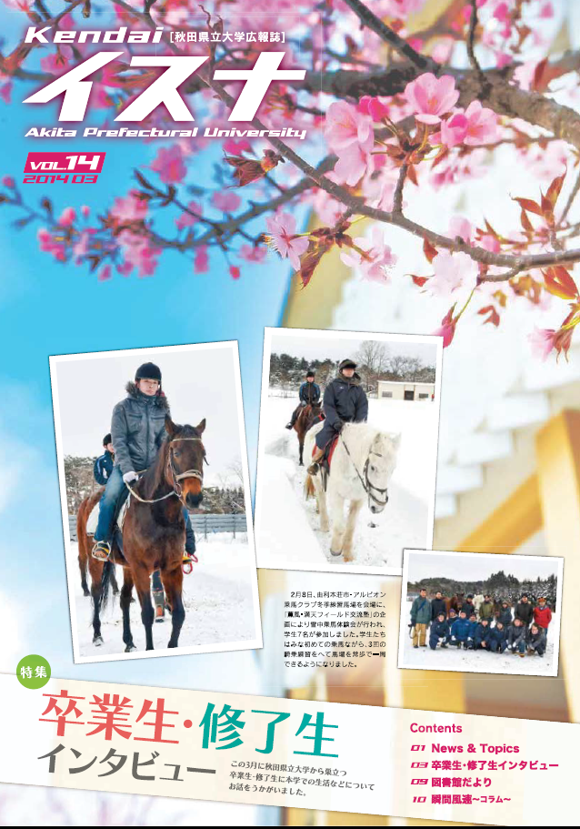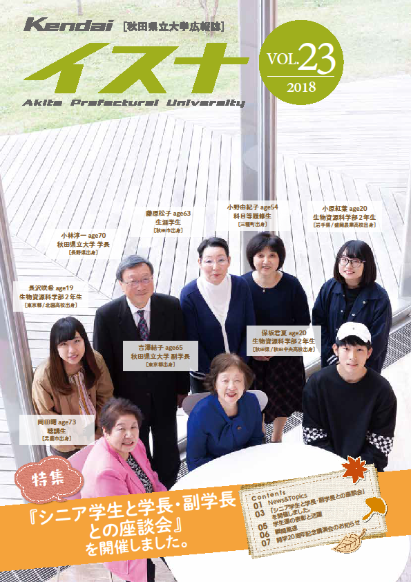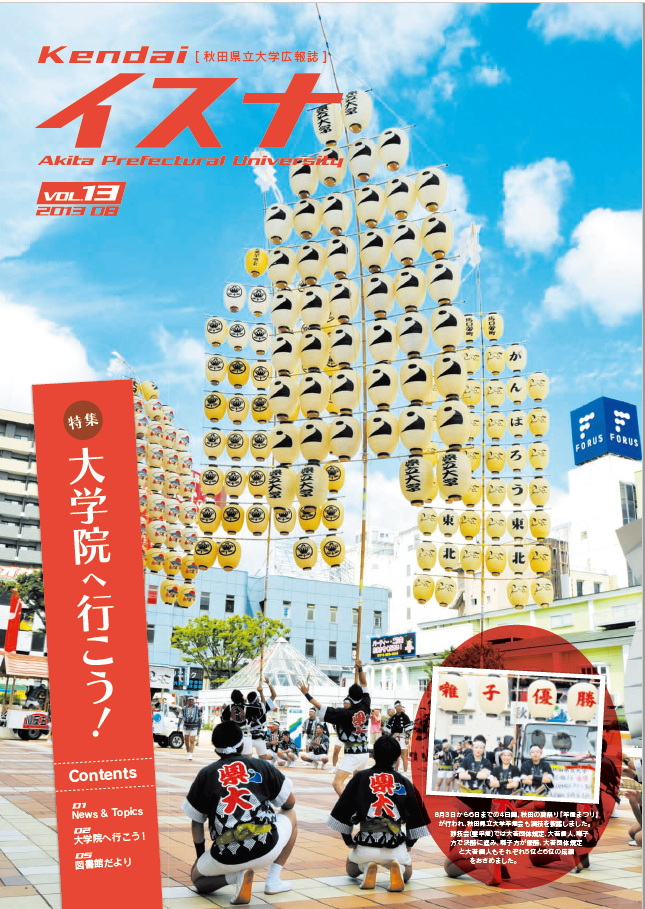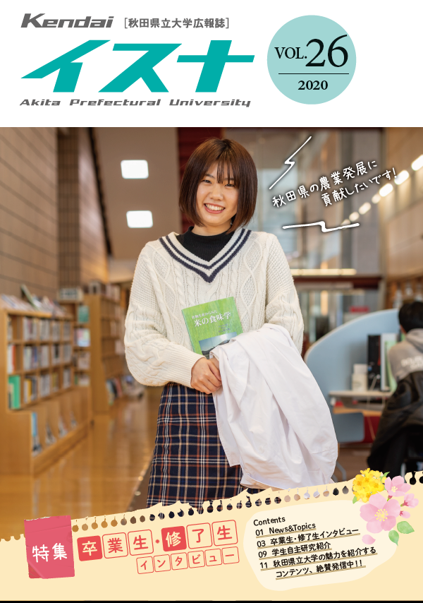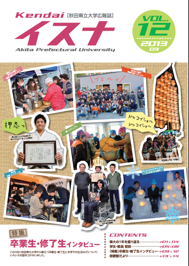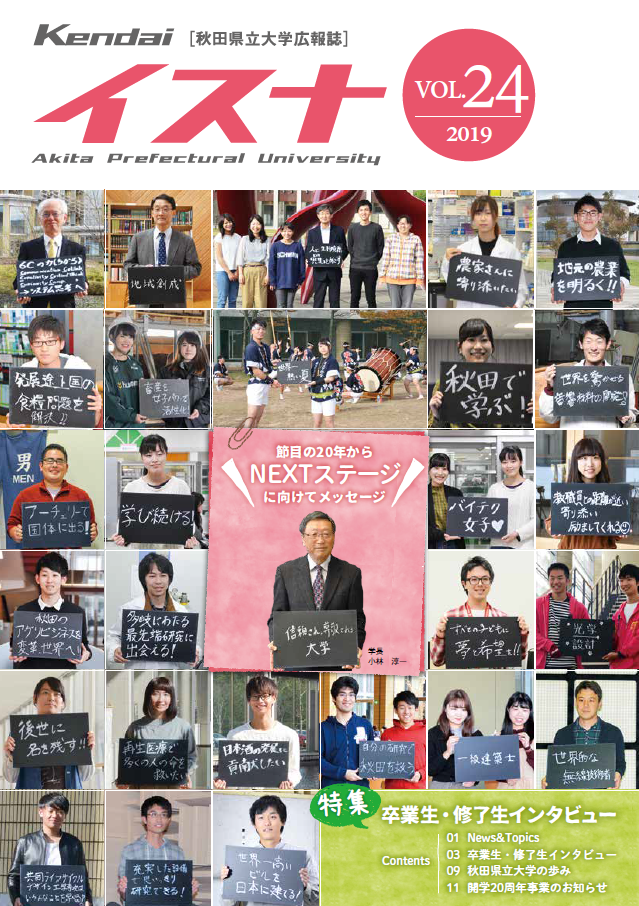広報誌イスナ 秋田県立大学広報誌 イスナ イスナ Vol.33(最新号) イスナ Vol.32 イスナ Vol.31 イスナ Vol.30 イスナ Vol.29 イスナ Vol.28 イスナ Vol.27 イスナ Vol.26 イスナ Vol.25 イスナ Vol.24 イスナ Vol.23 イスナ Vol.22 イスナ Vol.21 イスナ Vol.20 イスナ Vol.19 イスナ Vol.18 イスナ Vol.17 イスナ Vol.16 イスナ Vol.15 イスナ Vol.14 イスナ Vol.13 イスナ Vol.12 イスナ Vol.11 イスナ Vol.10 イスナ Vol.9 イスナ Vol.8 イスナ Vol.7 イスナ Vol.6 イスナ Vol.5 イスナ Vol.4 イスナ Vol.3 イスナ Vol.2 イスナ 創刊号 科学のフリーペーパー イスナ Science イスナサイエンス Vol.10 イスナサイエンス Vol.9 イスナサイエンス Vol.8 イスナサイエンス Vol.7 イスナサイエンス Vol.6 イスナサイエンス Vol.5 イスナサイエンス Vol.4 イスナサイエンス Vol.3 イスナサイエンス Vol.2 イスナサイエンス Vol.1