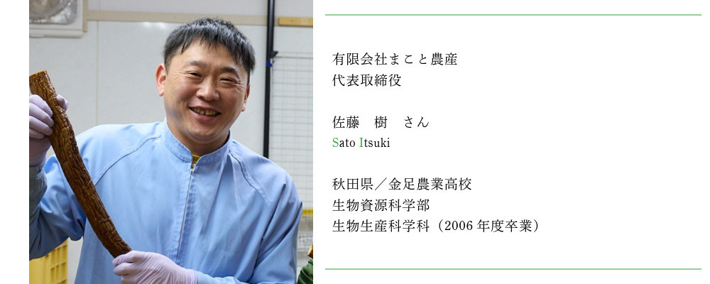 また、ご指導いただいた藤先生からは農業者にとって特に必要なこととして、自分の意見を発言することの重要性をご教授いただきました。こんにち私が地元JAの理事や自社商品であるいぶりがっこを海外に発信出来ているのも、大学時代の教えがあったからだと感じています。これからも常識にとらわれない様々な事に挑戦して、自分の可能性を広げていきたいです。