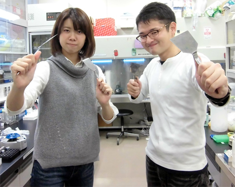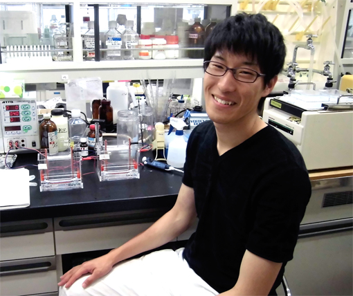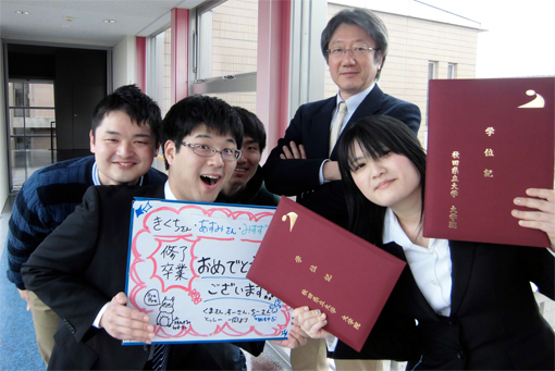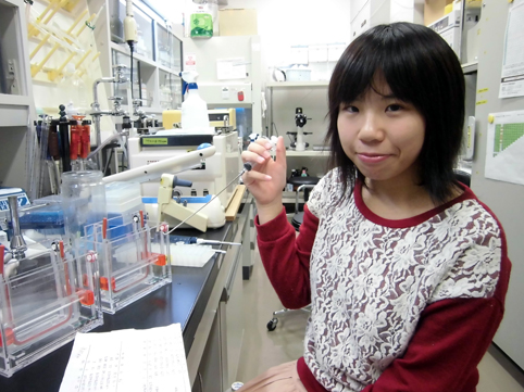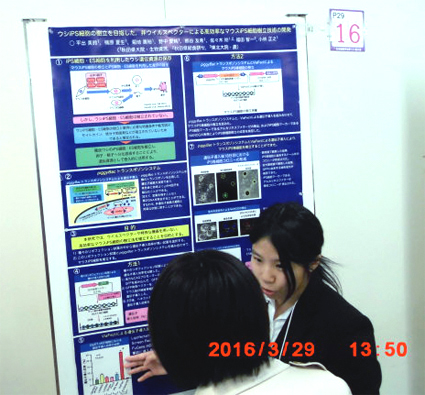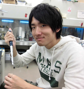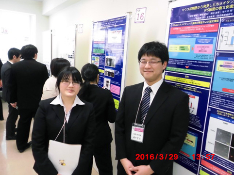 ・H26年度大学院入学生特待生 --------------------- 大学院修士課程 修士課程2年(12期)菊地 貴裕(福島県) マウスiPS細胞の樹立に及ぼすEGAM1ホメオタンパク質群の影響に関する研究 ・第64回東北畜産学会大会優秀発表賞 修士課程2年(12期)野中 愛純(岩手県) EGAM1ホメオタンパク質群と相互作用する転写因子に関する研究 ・第65回東北畜産学会大会優秀発表賞 修士課程1年(13期)熊谷 友希(秋田県) 動物胚の受胎率向上を目指した遺伝子組換え技術による活性増強型FGF4の開発 --------------------- 卒業論文研究 学部4年生(14期)平出 美鈴(山梨県) 動物iPS細胞の成立要因に関する研究 --------------------- 学部3年生研究室配属 学部3年生(15期)佐藤 卓(奈良県) 学部3年生(15期)古舘 千秋(岩手県)