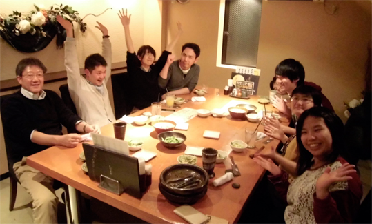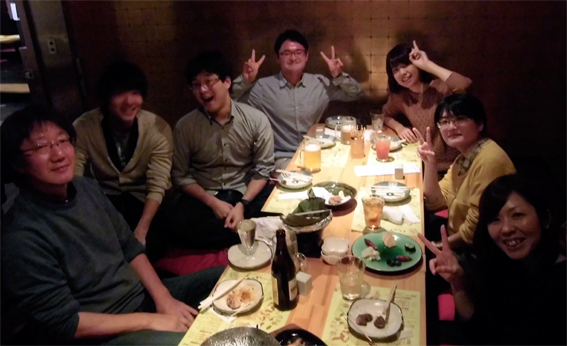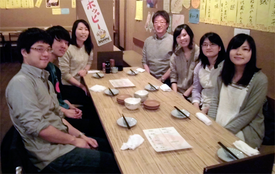 現役大学院生・学部生&研究室OG交流ミーティング@近所の「とりっこ」 会社の業務(iPS細胞関係)で研究室に来てくださいました。 |