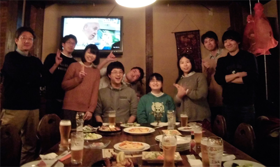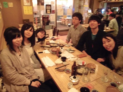 現役大学院生・学部生&研究室OB交流ミーティング&3年生新歓@「比内や」+「月あかり」 二次会の「月あかり」。終電にすべり込みセーフ。 |