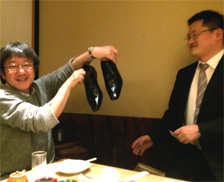 お店より、光り輝く新品の靴を仲澤先輩にプレゼント! |