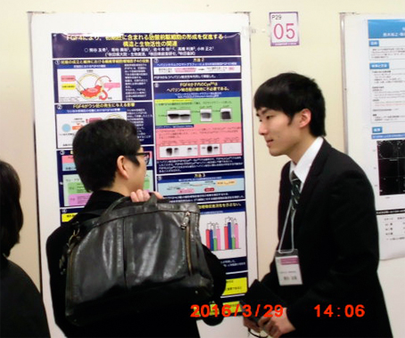 第65回東北畜産学会宮城大会 優秀発表賞受賞!(H27年8月28日) 本研究室で発見したEGAM1Nは、発生の初期段階で出現する前駆細胞群への分化過程だけではなく、心筋分化に例示される終末分化の過程にも影響することを示しました。 |