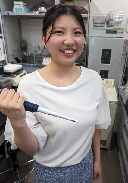大学院修士課程 修士課程1年(22期) 小澤 ゆか(山梨県) ウシiPS細胞の作出に関する研究 --------------------- 卒業論文研究 学部4年生(23期) 渡辺 夏美(岩手県) マウス初期胚から発見したEGAM1ホメオタンパク質群による細胞運命の転換に関する研究 学部4年生(23期) 渡辺 彩(秋田県) ウシiPS細胞の作出に関する研究 --------------------- 学部3年生研究室配属 7月に配属予定 学部3年生(24期) 池田 こころ(静岡県) 学部3年生(24期) 平岡 梨朋(大阪府)