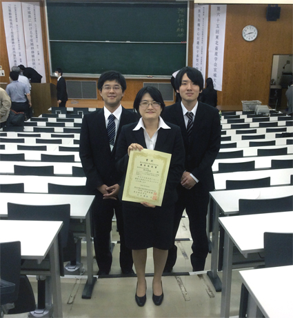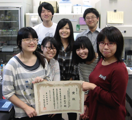 大学院修士課程1年 佐藤 由貴 平成24年度 ・日本生物高分子学会2012年度大会優秀発表賞(H24.9.21,秋田大会) ・第116回日本畜産学会大会優秀発表賞選考会ファイナリスト(H25.3.28,広島大会) 大学院修士課程2年 森 祐貴 大学院修士課程1年 菅原 彩子