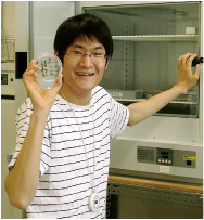 喜多悠斗さん(R3年3月修士修了)がお仕事の関係(再生医療関係)で秋田大学病院に! 研究室に立ち寄ってくださいました! |