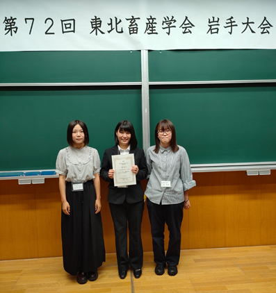 ・第58回東北畜産学会大会優秀発表賞(H20.8.22,福島大会) 大学院修士課程1年 細井 勇輔