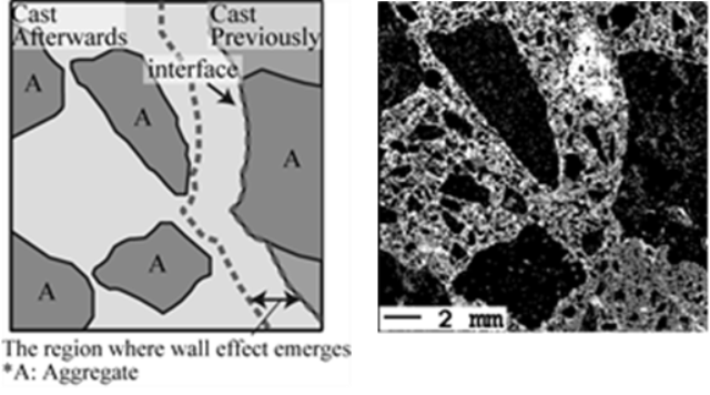 ※右側写真は、Caマップを基に界面における骨材の壁効果を論じたものです。