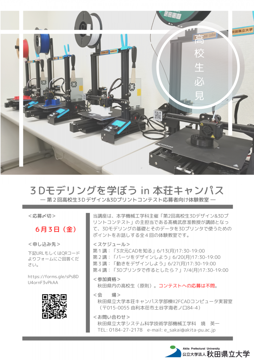 秋田県立大学本荘キャンパス学部棟Ⅱ2F CADコンピュータ実習室(〒015-0055 由利本荘市土谷字海老ノ口84-4)