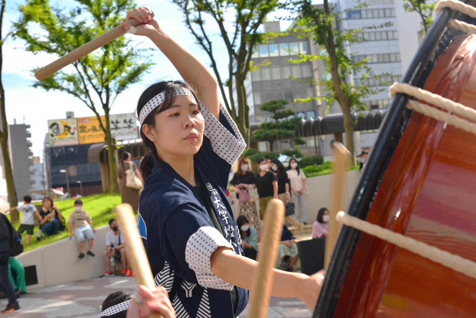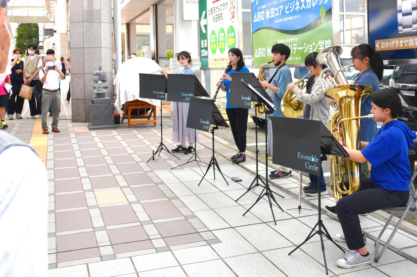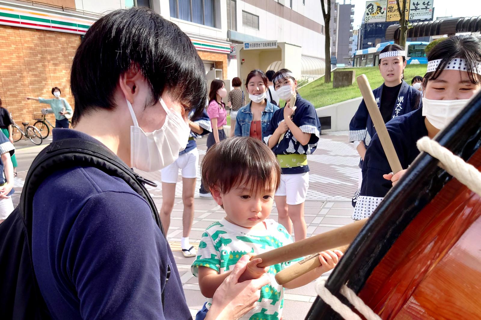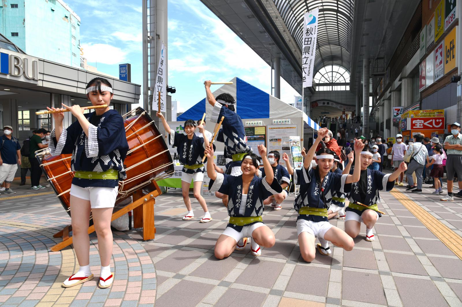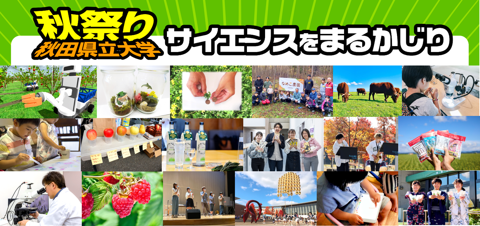 9月17日(土)11:00~15:00、秋田駅前買物広場大屋根下・アゴラ広場において、生物資源科学部が主催し『県大秋祭り~サイエンスをまるかじり~』を開催しました。このイベントは、秋田県立大学の教職員・学生と地域の皆さんが交流を深める場として、今回初めて企画・実施したもので、当日は、子どもたちに科学の楽しさを伝える「わくわく科学体験」や学生の研究成果の展示、各種ワークショップ、県大竿燈会など学生団体の演技・パフォーマンスなど、本学ならではの多彩なメニューで実施しました。