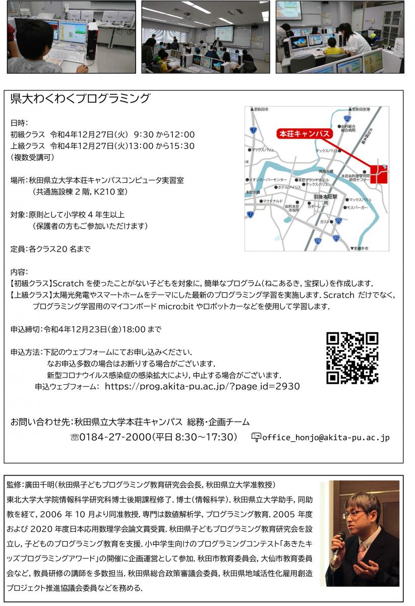 【2022後期】「県大わくわくプログラミング」を開催します