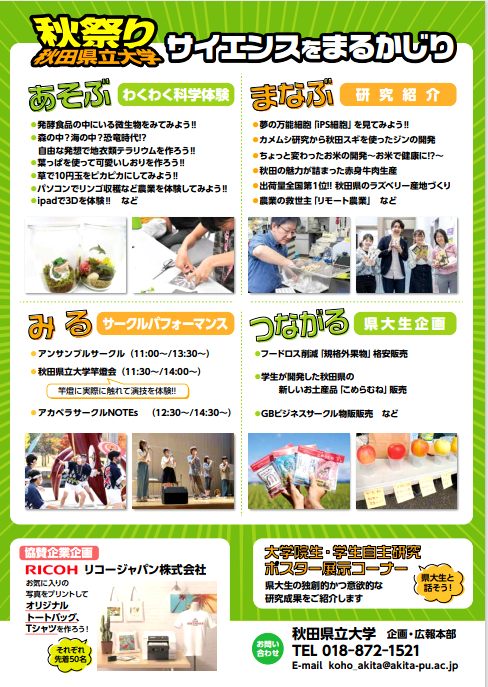 【主催】秋田県立大学 生物資源科学部 広報委員会(事務局:企画・広報本部 企画チーム)【協賛】リコージャパン株式会社 秋田支社
