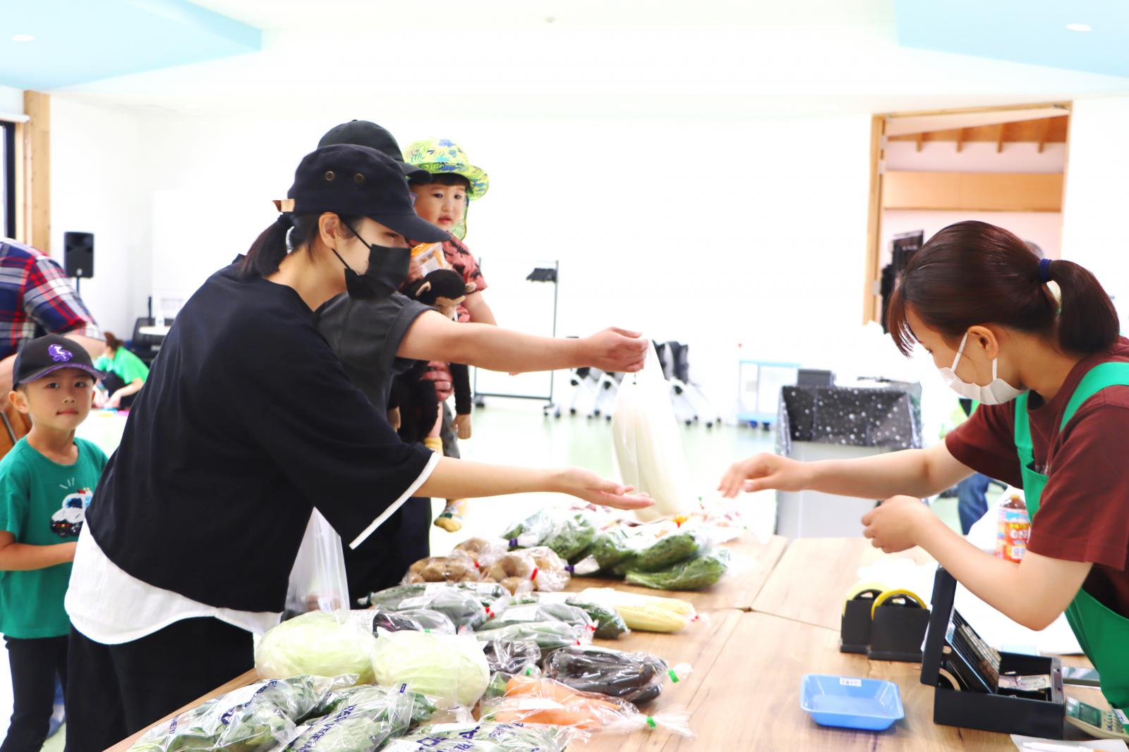AM10:00から開催されたアグリフェスには、朝から地域の方々が多く訪れました!なかでも、取れたて野菜、規格外トマトを活用した「完熟トマトのチーズケーキ」などの販売エリアには、開催直後から多くの人で賑わっていました。