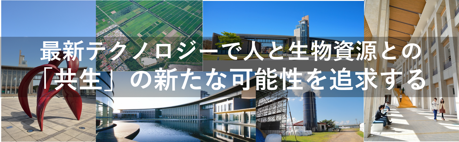 食料・エネルギー・環境の問題は、21世紀の人類が地球で生きつづけていくのにクリアしなければならない大きな課題です。この3つは世界全体で考え、グローバルに解決を図っていくべきものですが、地域や国から具体的な解決策を提示し、発信していくテーマでもあります。生物資源科学部では、これらの課題に対して、バイオテクノロジーなど先端技術を駆使してアプローチしていきます。そのため、グローバルな視点から人間と生物環境の関わりを捉え、各分野の専門的知識や技術を統合して課題を解決していく能力を養っていきます。さらに、地域にあってこれらの問題解決に役立つ、新しいアグリビジネスを創造していく能力も育成していきます。
