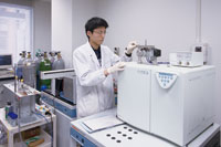 生物体に含まれる機能性化合物の存在量や、構造を調べるときに威力を発揮します。微量の有機化合物を定量することを得意とする分析機器で、ピコグラム(10(-12)グラム)の感度で化合物を検出できます。フルタイムで研究をサポートする優秀な働きモノです。