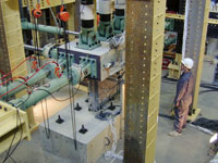 本実験室には、デジタル変位計で高精度制御される油圧ジャッキを最大12台同時使用可能な多軸静的構造実験システムがあり、建築物の構造性能評価に関する研究に使用しています。このシステムは東北地方の大学では最大規模、全国的にもトップレベルであり、建築構造系大学院生に高水準の教育・研究環境を提供しています。