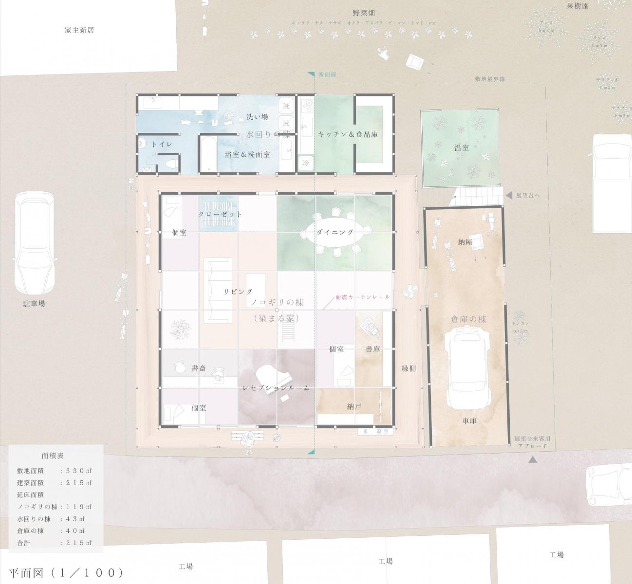 「染まる家 -変化量の少ない箱と等価な小さな部屋たち-」