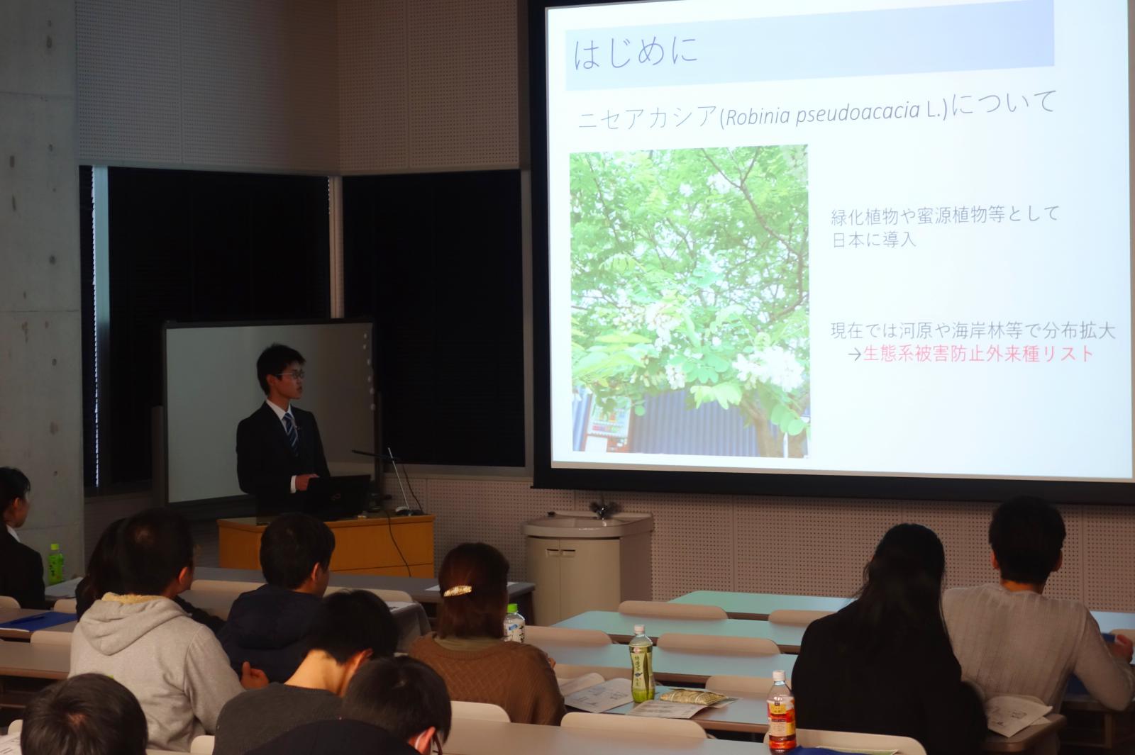 この度は森林・林業技術交流会において奨励賞を頂いた事を大変光栄に思います。このような賞を受賞できたのも、蒔田先生をはじめとする森林科学研究室の皆様や、様々な面で研究を手助けして下さった皆様のおかげです。来年度は研究内容をさらに発展させ、ニセアカシアの分布拡大のメカニズムや関係している要因について明らかにしていきたいと考えています。