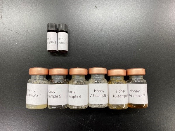 蜂蜜は現在、AOAC(Association of Official Analytical Chemists)による公定法(AOAC Official Method 998.12)によって、蜂蜜自体と蜂蜜中のタンパク質の炭素安定同位体比を分析することで、糖類の混入(偽装)を識別しています。しかし、識別出来るのは、C4植物由来の糖類(コーンシロップなど)のみであり、C3植物由来の糖類(ライスシロップ)の混入は見分けることは出来ません。そのため、C3植物由来の偽装が相当の割合であるのではないかと危惧されています。
