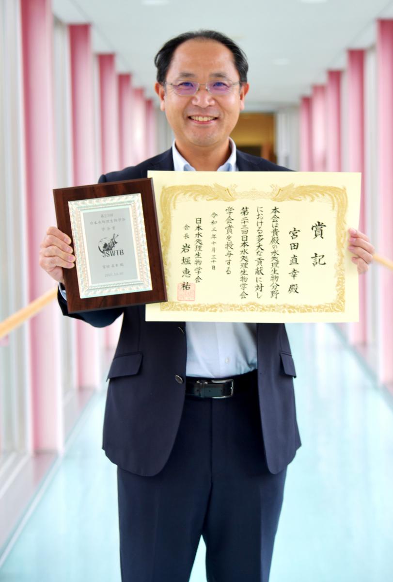 10月28日(木)~30日(日)にオンラインにより開催された「第57回日本水処理生物学会年会(神奈川大会)」において、生物環境科学科の 宮田 直幸 教授(生態工学研究室)が学会賞と論文賞を同時受賞しました。宮田教授はこれまで一貫して、水環境の金属元素循環に関与する微生物生態の解明や、生態系や微生物の機能を利用した水質浄化技術の開発などの研究を続けており、これらの研究業績が高く評価され、この度の学会賞と論文賞の同時受賞につながりました。
