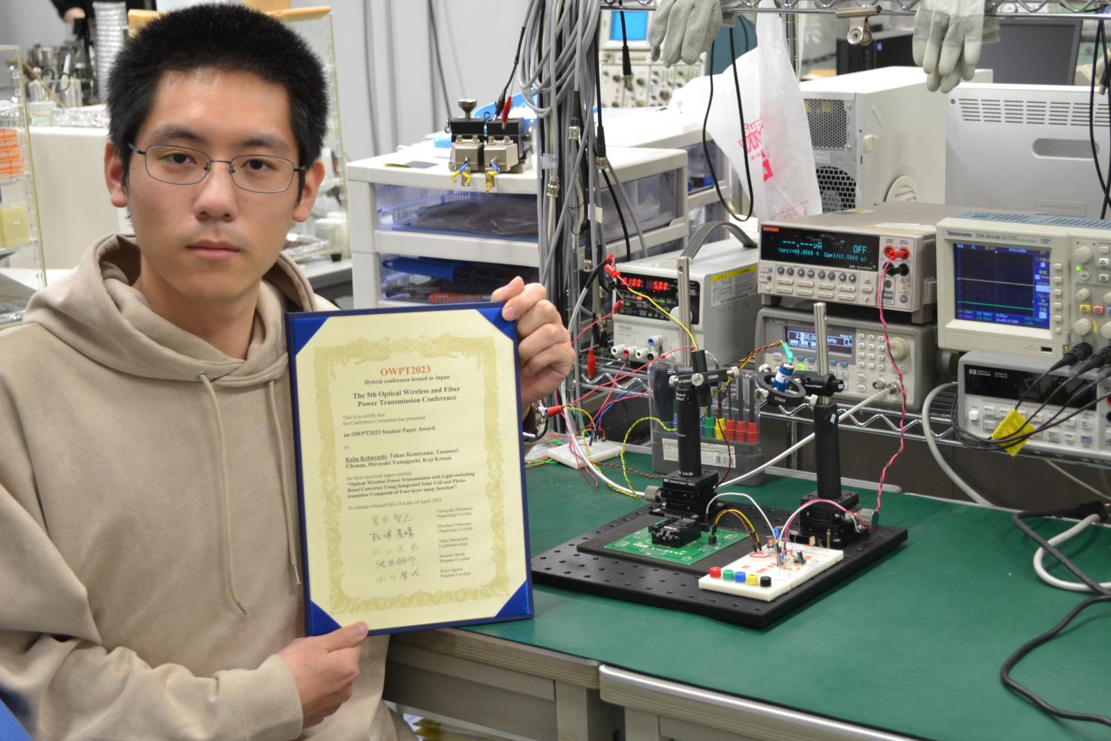 本学大学院生が国際学会(The 5th Optical Wireless and Fiber Power Transmission Conference [OWPT2023])の Student Paper Awardを受賞しました