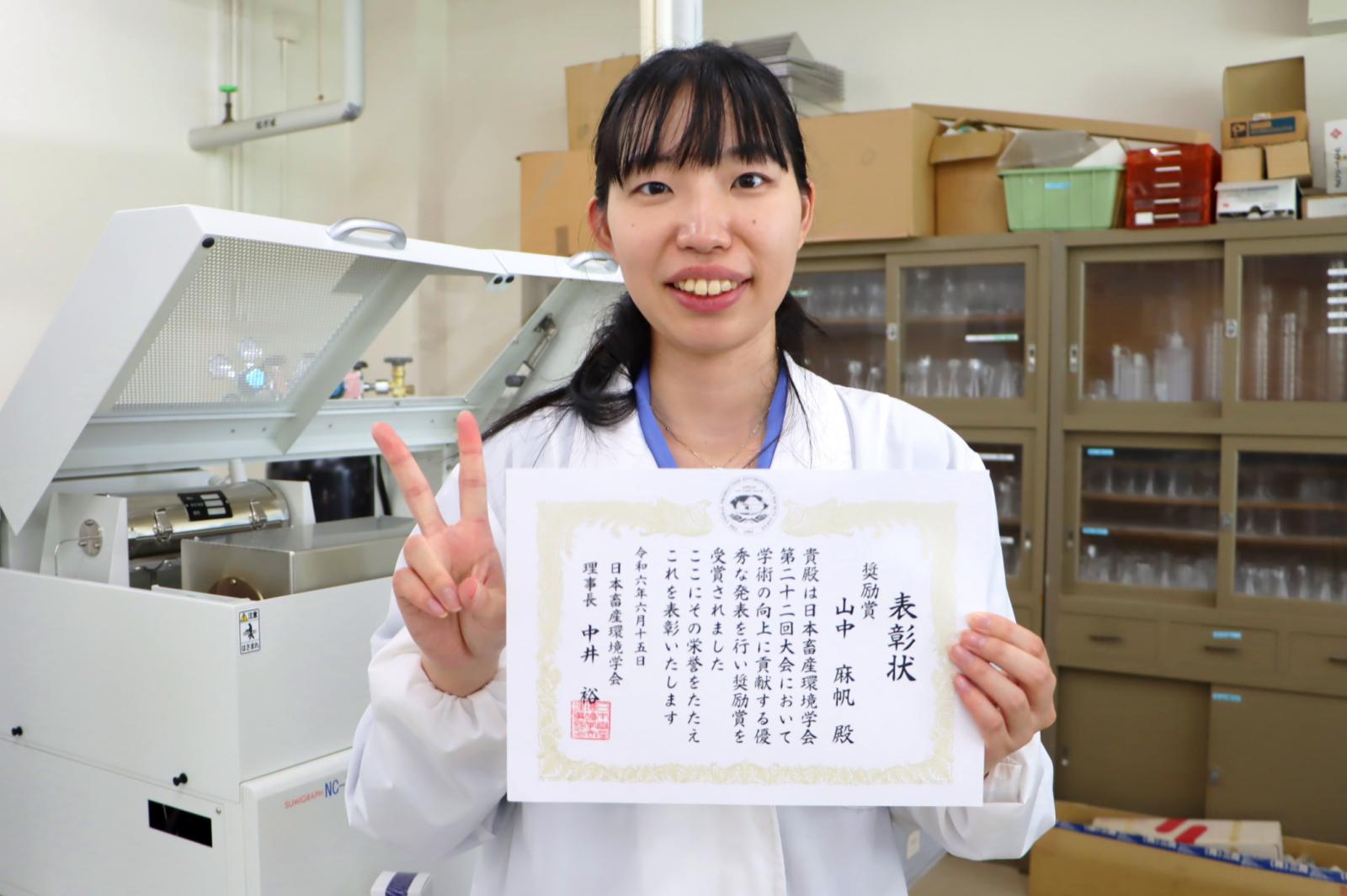 6月15日(木)、東京都・全国家電会館で開催された「日本畜産環境学会第22回大会」において、アグリビジネス学科家畜資源利用推進プロジェクトの山中 麻帆 助教[専門:飼料機能科学]が奨励賞を受賞しました。山中助教は、地域資源の循環利用に基づいた家畜生産技術の基盤構築を目指し、主に農業残さなどの未利用資源の利活用などについて研究を進めており、これらの研究業績が高く評価され本賞の受賞につながりました。