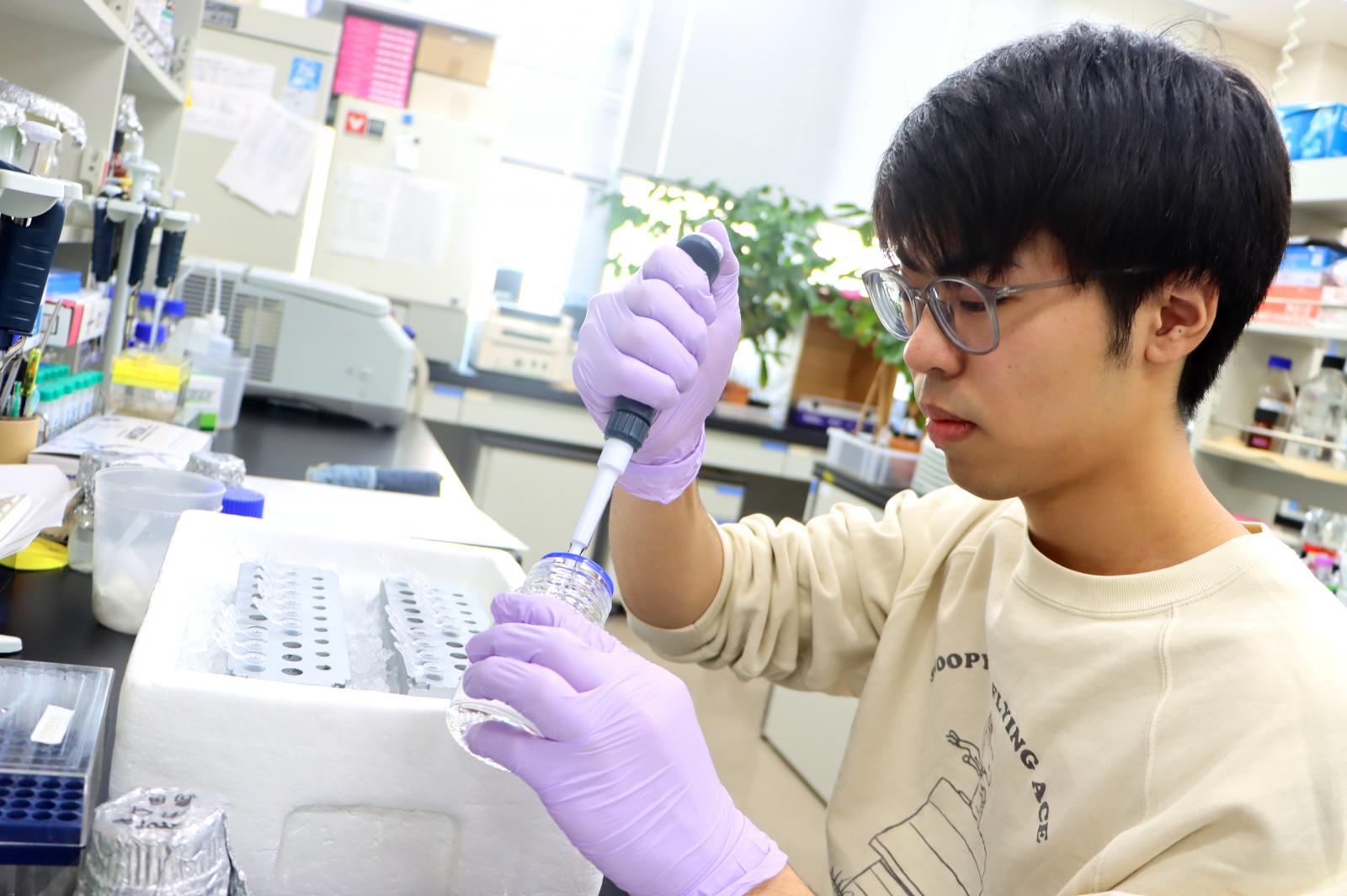 本研究に貢献した応用生物科学科4年の島田旭さん