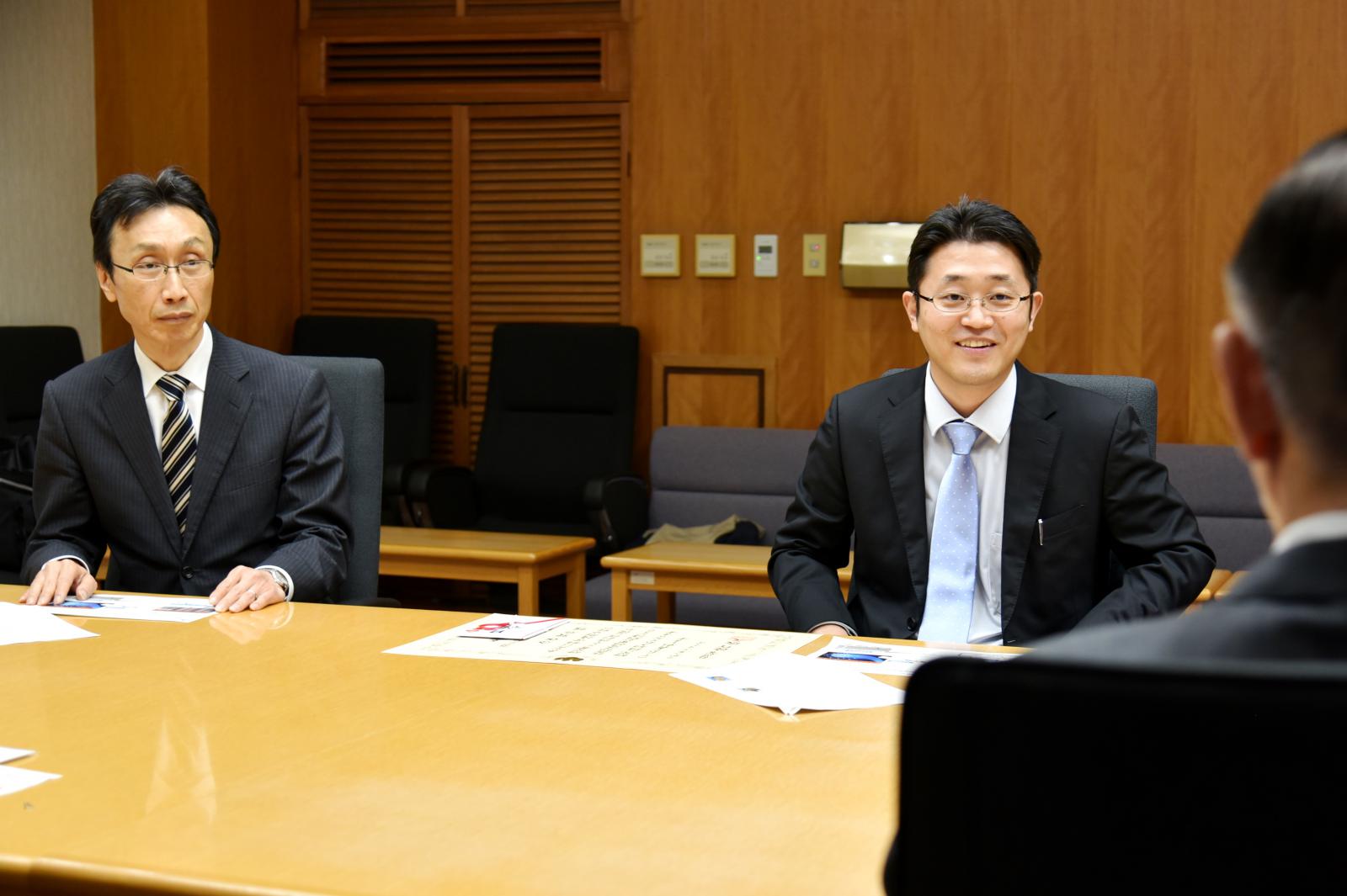 今後の研究の展望について知事と懇談[左]:西田学部長