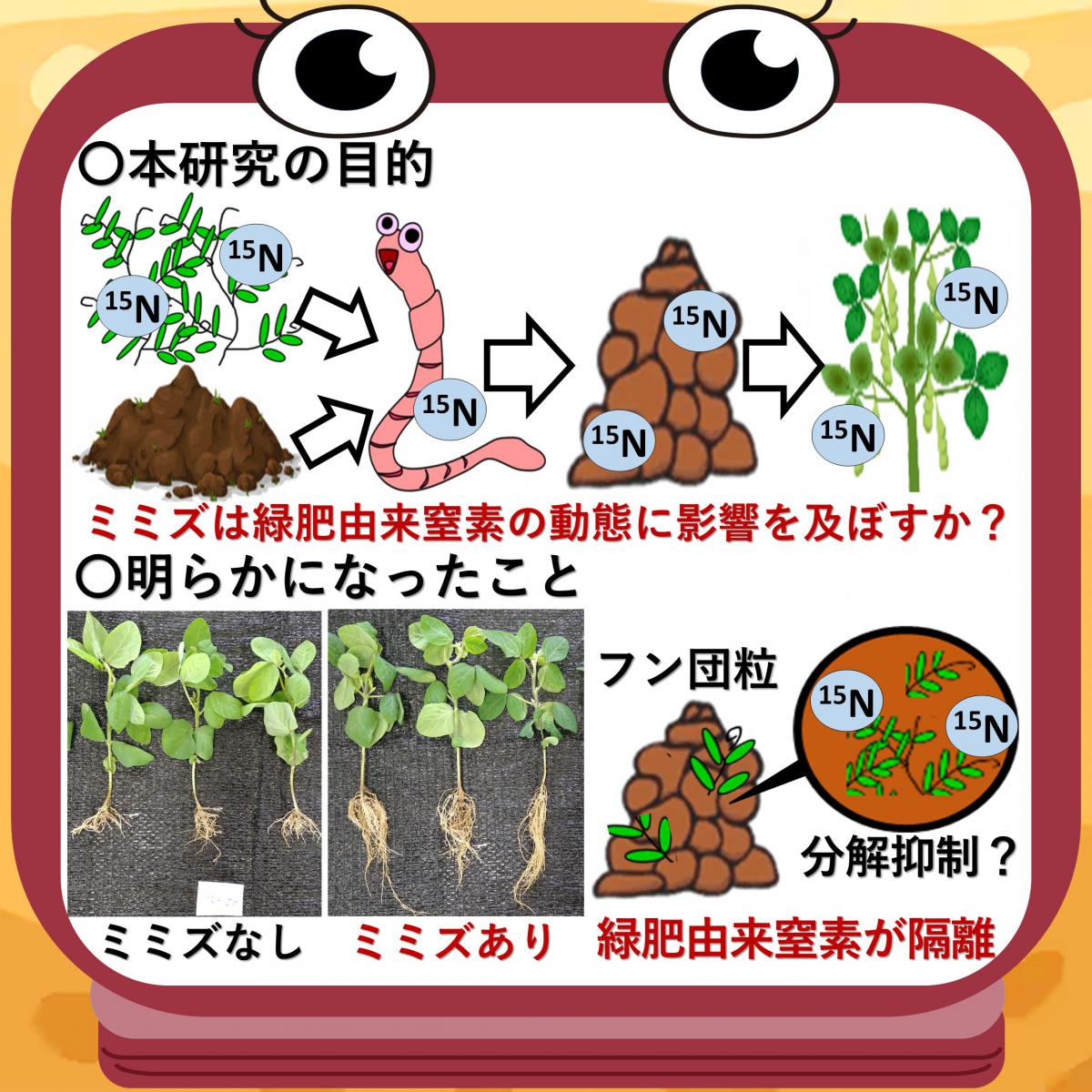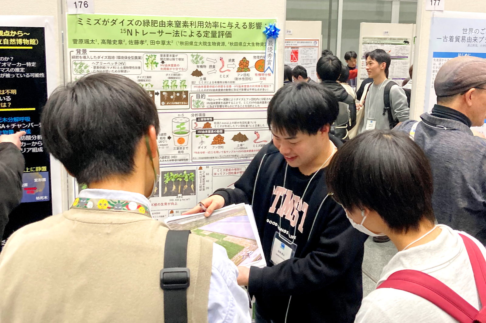 「ミミズがダイズの緑肥由来窒素利用効率に与える影響:15Nトレーサー法による定量評価”」菅原颯太、高階史章、佐藤孝、田中草太