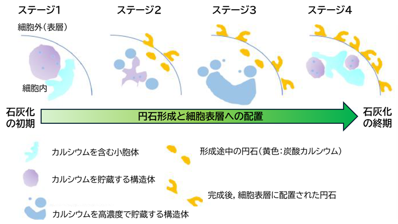 図 3. 石灰化の各段階におけるCa-rich compartmentのダイナミズム