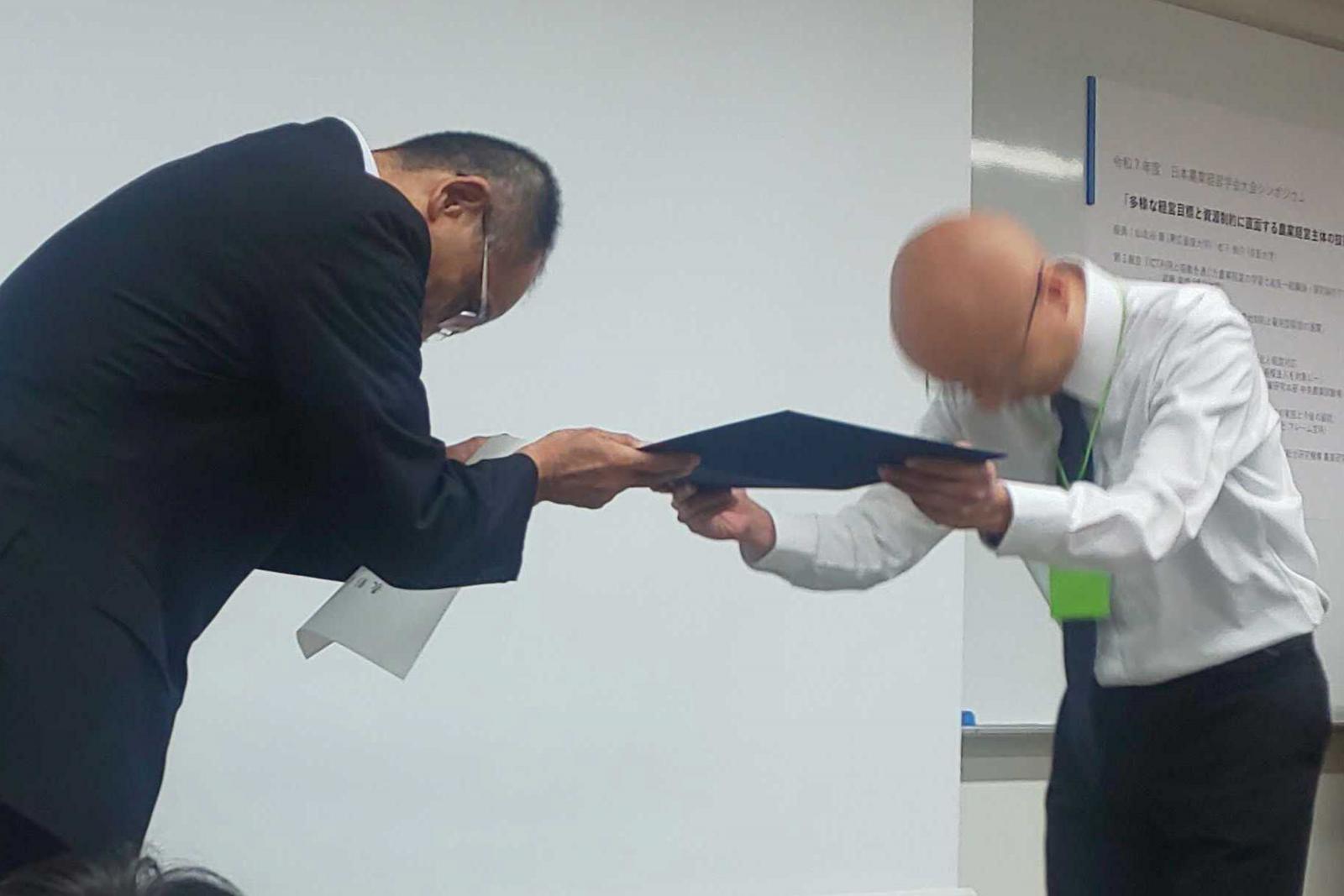 本学教員が日本農業経営学会で学術賞を受賞しました