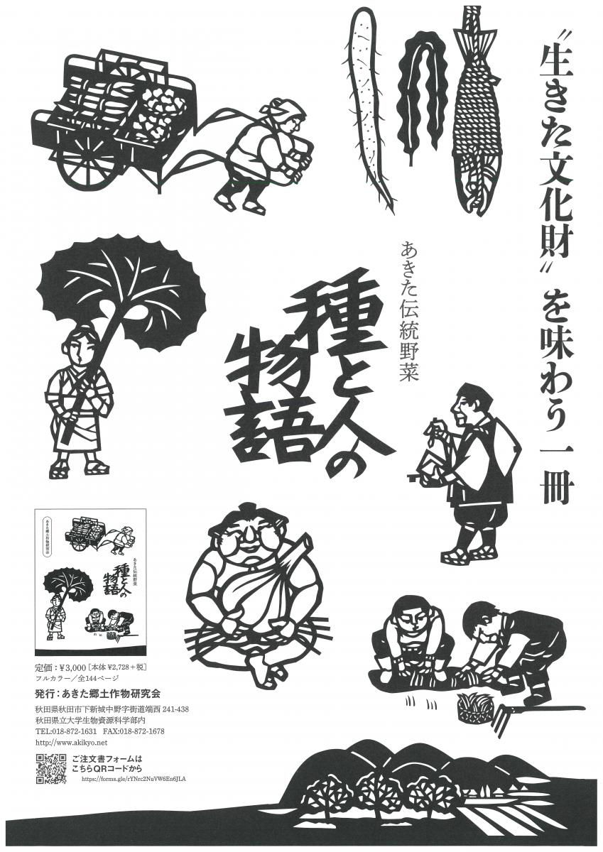 これまでの研究成果をまとめ8月1日に出版しました。栽培地や文献などの調査、実験など学術的な観点から検証を加え、県内で伝統的に栽培される「沼山大根」「三関セリ」「てんこ小豆」など、伝統野菜39品目を紹介しています。あきた伝統野菜「種と人の物語」