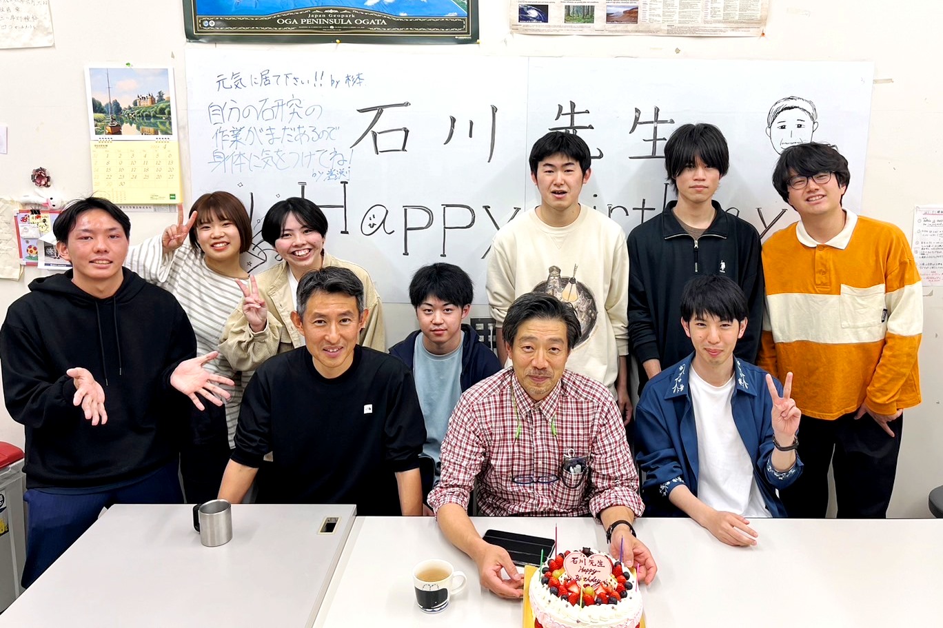 生物環境科学科/自然生態管理学研究室は、森林から農耕地、湖沼などの多様な自然生態系を対象に物質循環機能を調査し、その機能の修復・技術向上・適正管理技術の開発に関する研究をしています。ほとんどの学生がフィールドワークを基に研究を進めていますので、アウトドアや自然が好きな学生は、ぜひ一度研究室へ遊びに来てください!研究室ブログ 2024年5月9日付け「石川教授の誕生日会」より