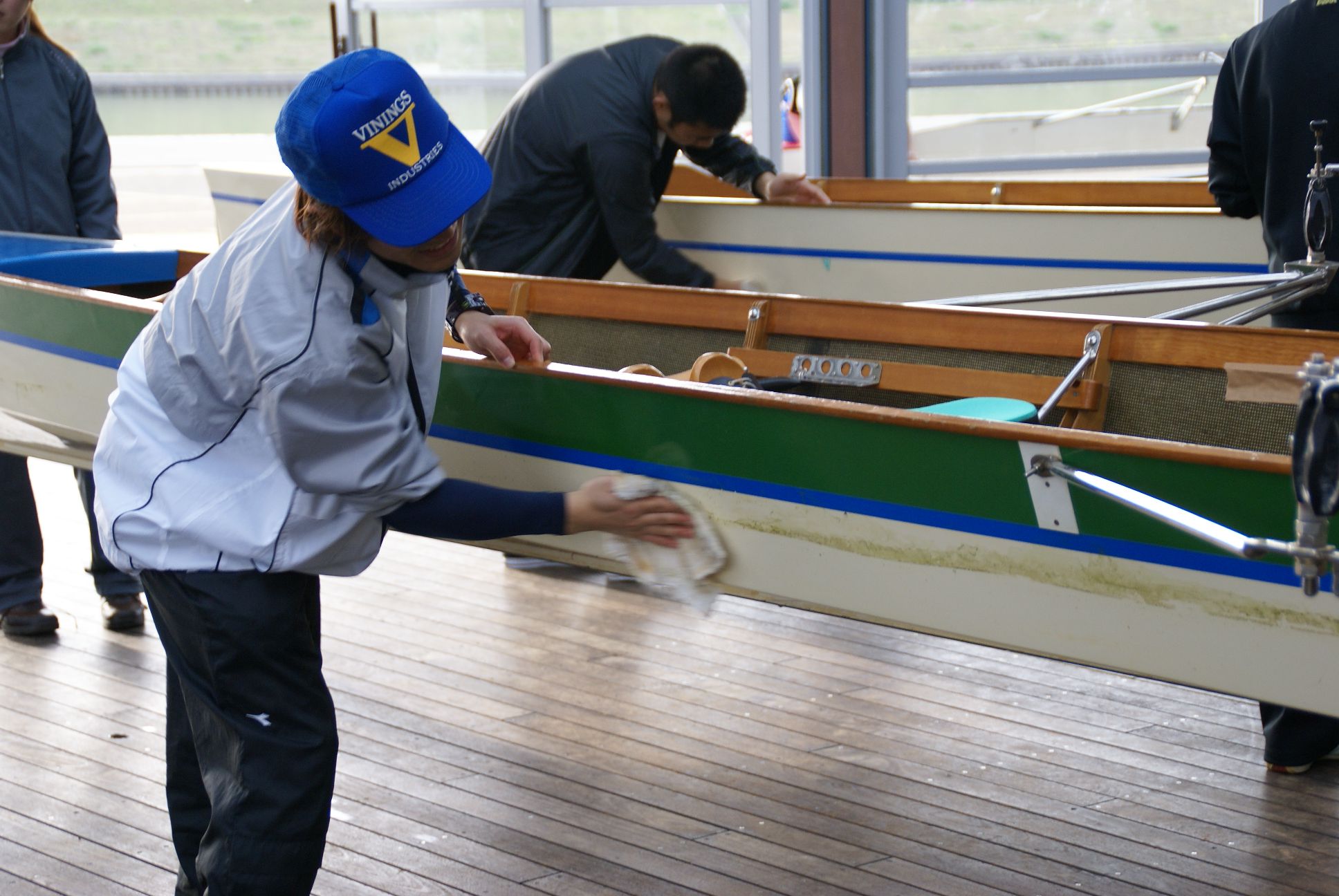 終わった後は、ボートをしっかり雑巾で拭きます