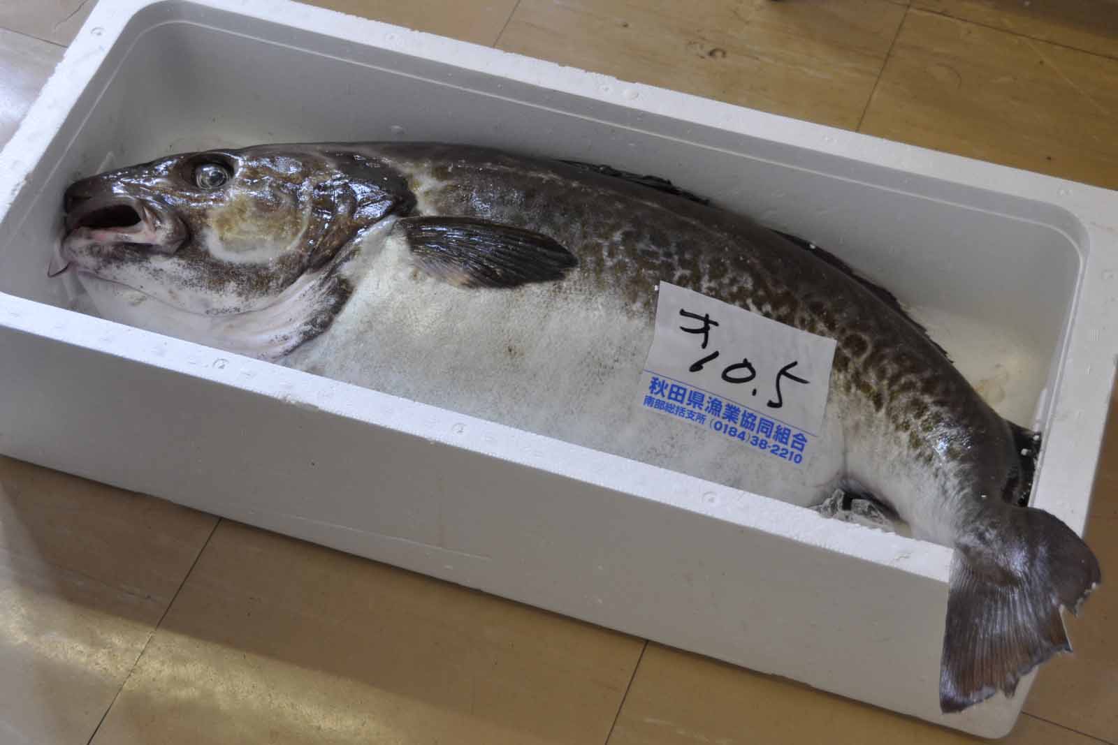 10.5kgの大物です.先日の掛魚祭りで神社に奉納されていた鱈よりずっと大きかったです