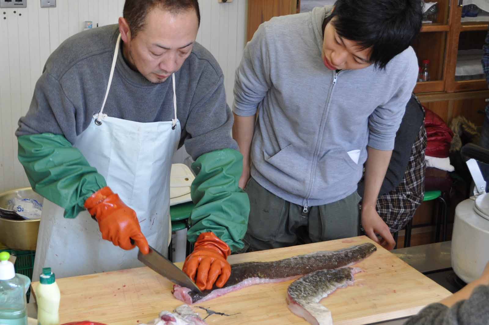 切り方を教わってみんなで鱈を切りました