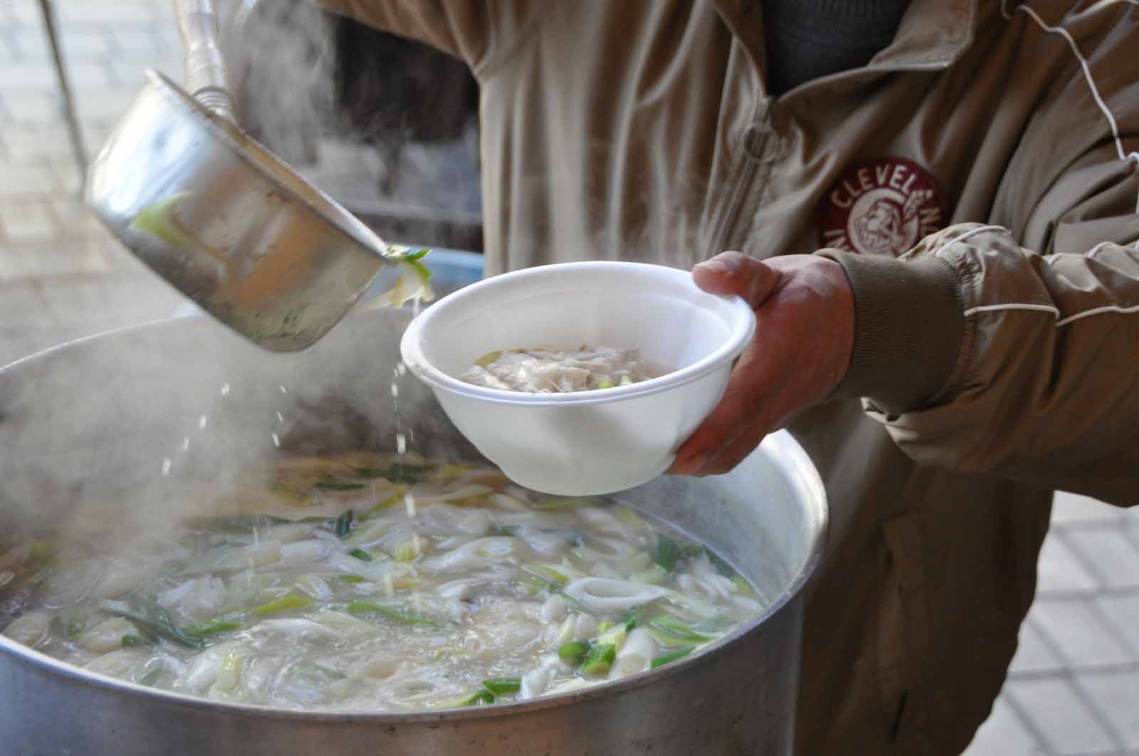 大鍋で炊かれるタラ汁を食べれば,いよいよ立春です.