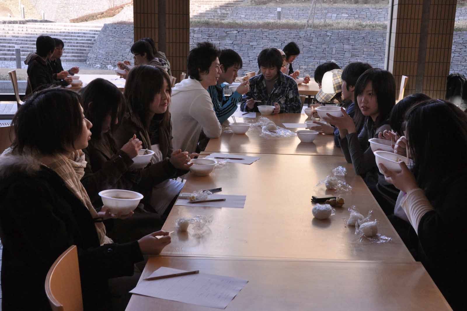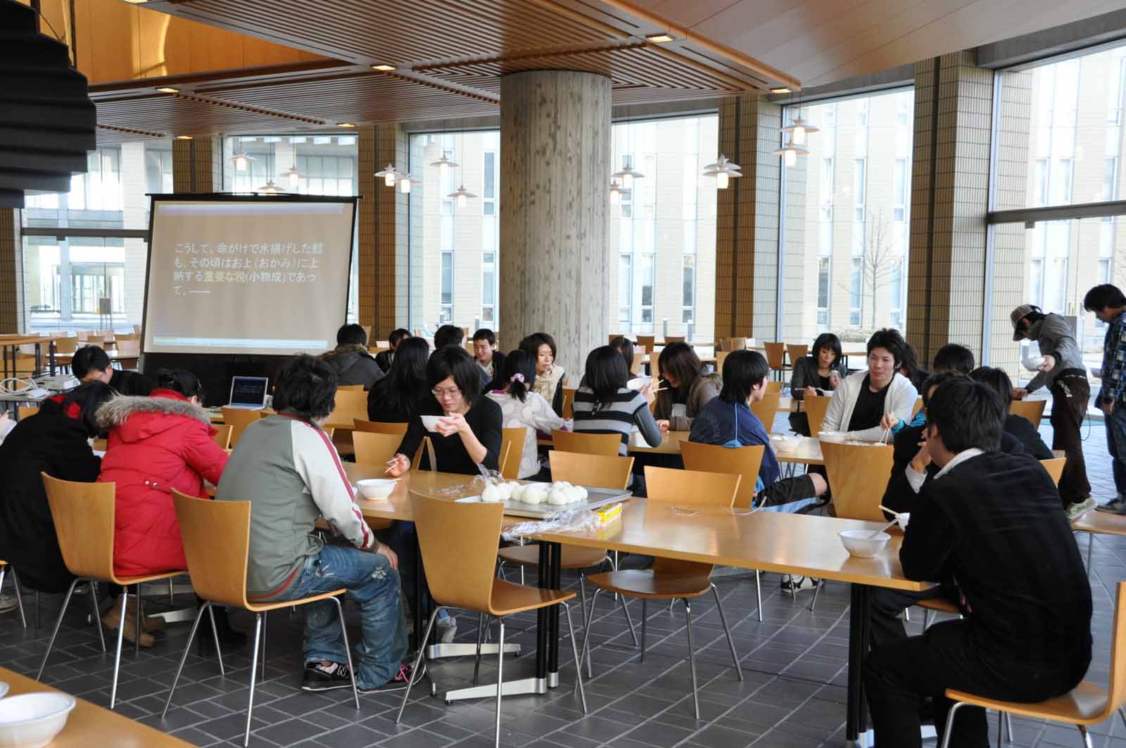 カフェテリアでは鱈汁と一緒に食べる