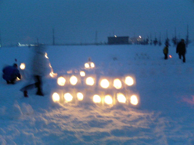幻想的な雰囲気をかもし出すミニかまくらたち.