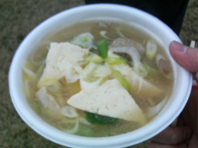 神社についたら,まず向いの広場で鱈汁のチケットを買いました.1杯500円です.1500食限定だという話で,10時の段階ですでに行列ができてました~.