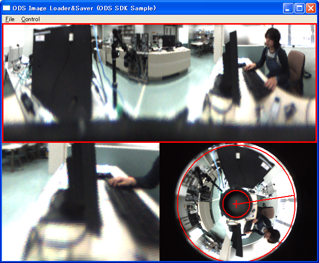 サンプルプログラム等で動かすとこんな風に映像が表示されます。