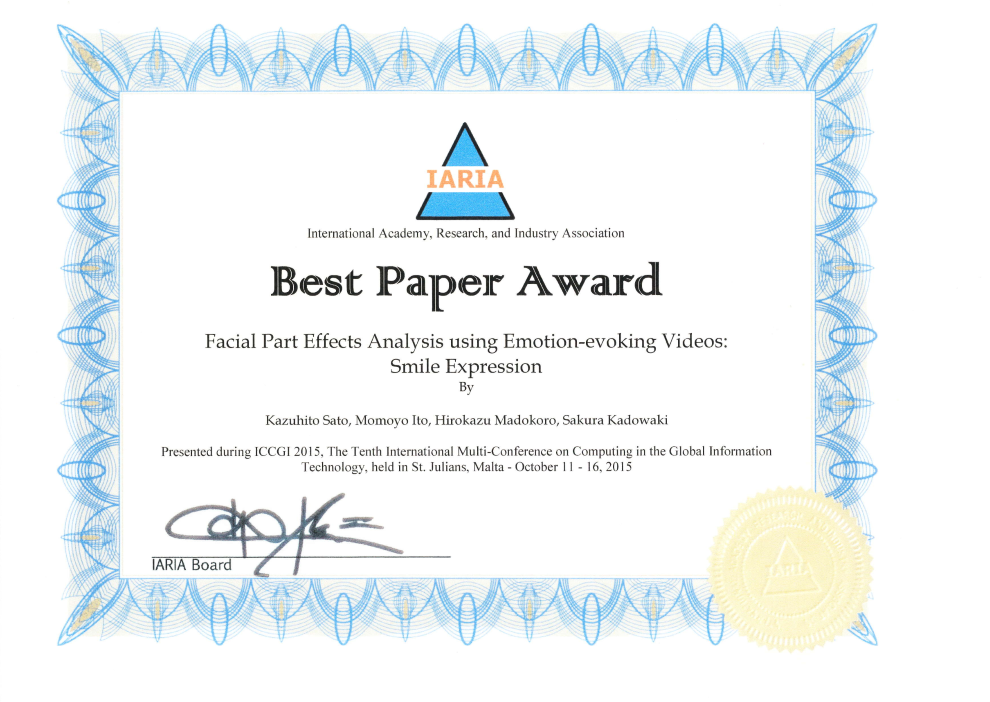 IARIA(International Academy, Research, and Industry Association)の査読は、自身が行っている研究の長所と短所を明確かつ論理的に細部に渡り指摘してくれます。査読結果への対応には、いつも苦慮しますが、謙虚に向き合うことの大切さに気付かされます。これからも、すべての物事に対して、謙虚な姿勢で対峙し続けたいと考えます。