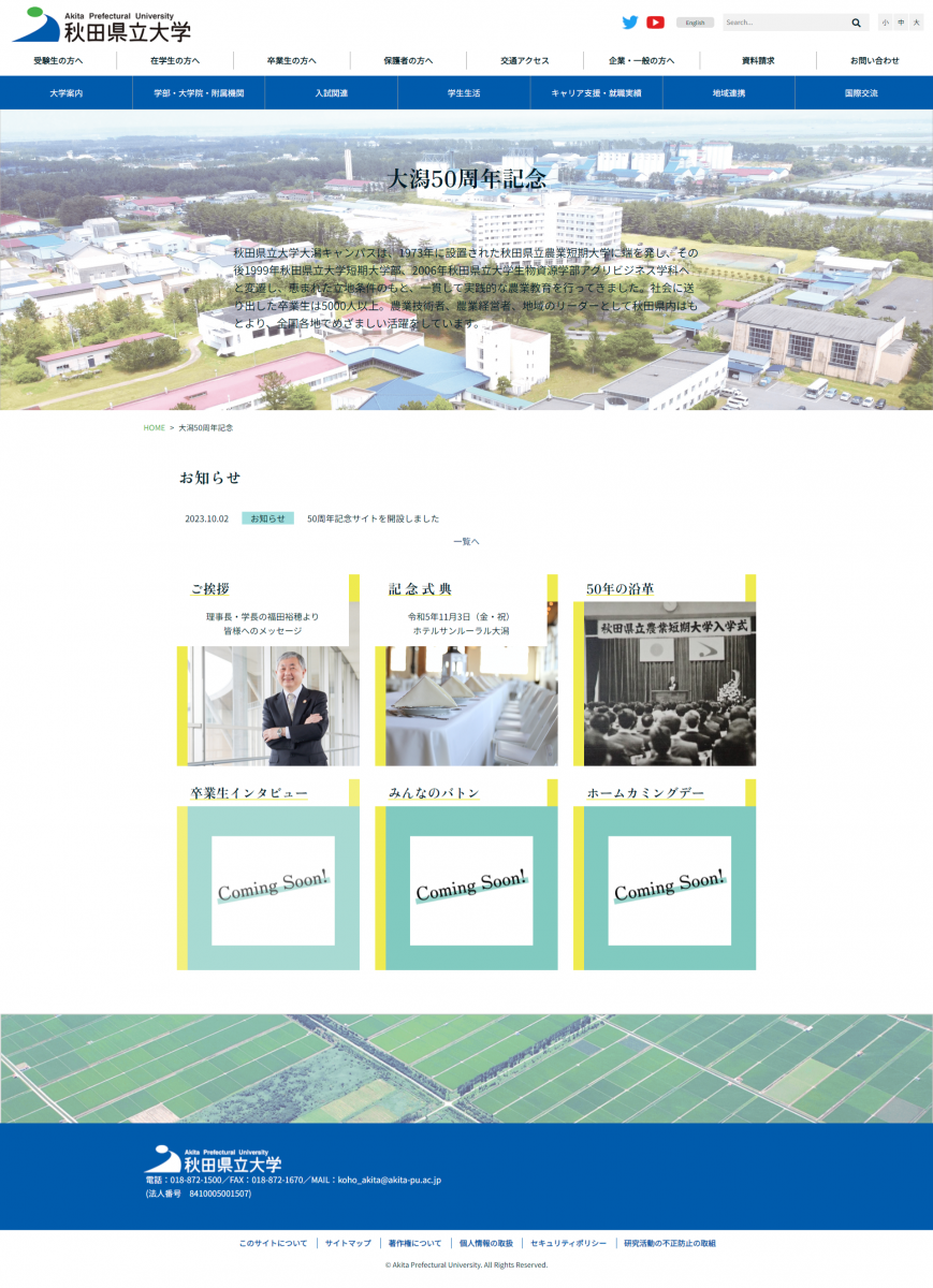 大潟キャンパス50周年を記念したページを開設しました。