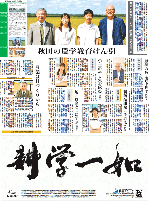 10月21日(土)付け秋田魁新報に、『大潟キャンパス50周年』記念座談会の記事が掲載されましたので、是非ご覧ください。