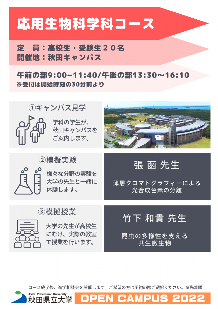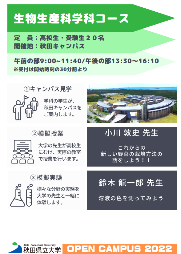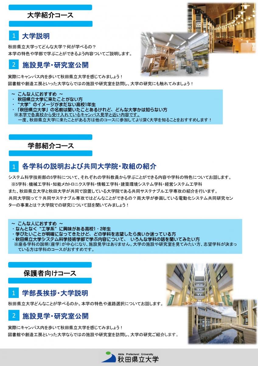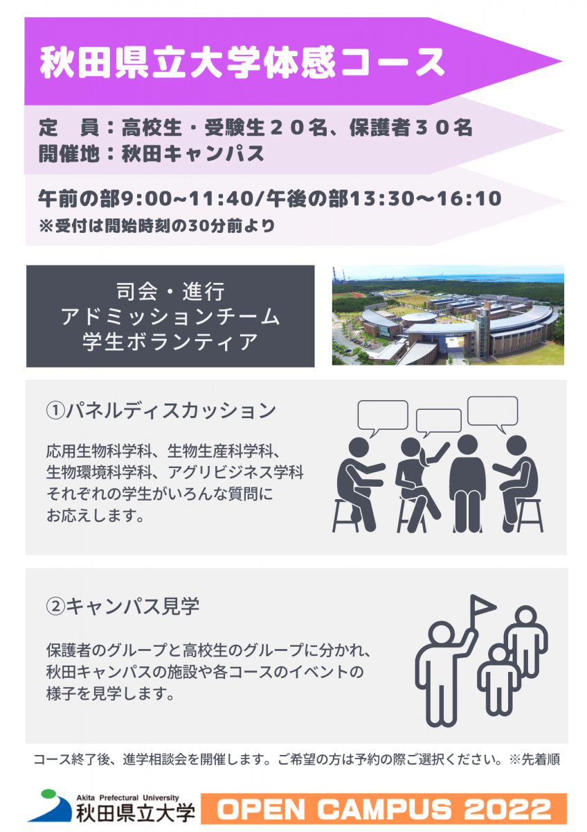 自分のニーズに合ったコースに申し込んで秋田県立大学を体験してみよう!