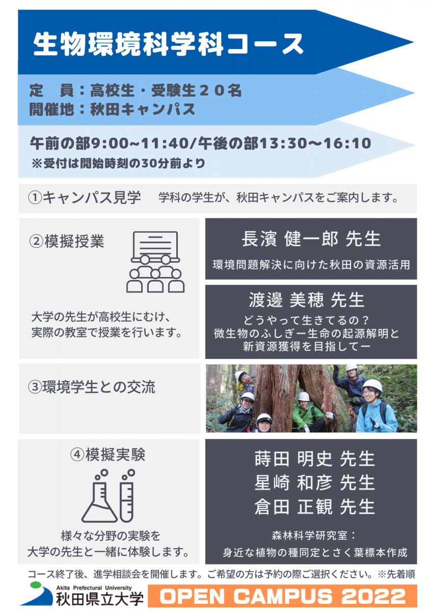 生物環境科学科コース・秋田県立大学体感コース