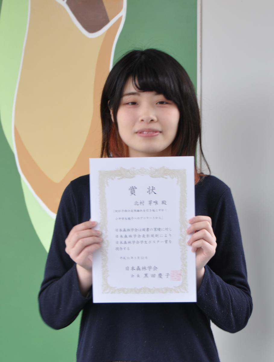 3月20日~23、新潟市朱鷺メッセで開催された「第130回日本森林学会」において、生物資源科学部生物環境科学科4年の北村芽唯さんが「学生ポスター賞」を受賞しました◆研究タイトル